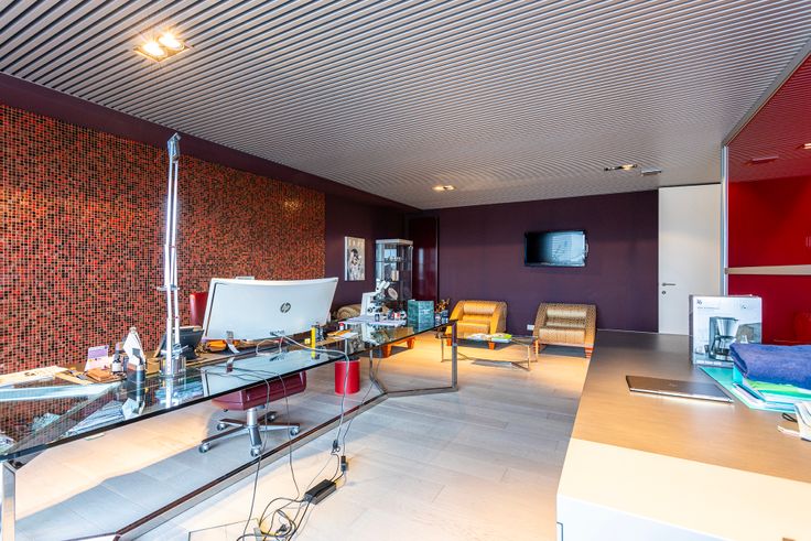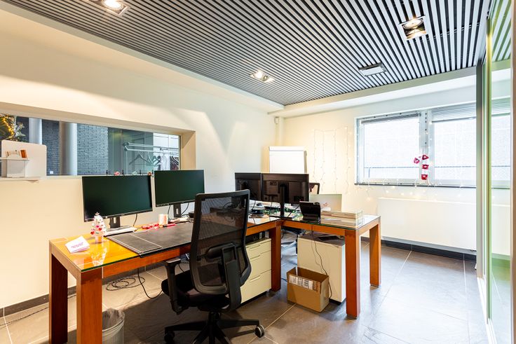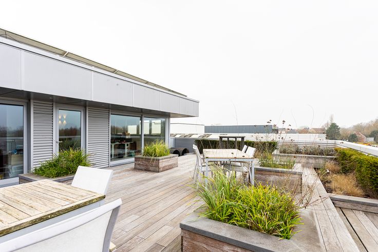 Helemaal achteraan bevindt zich nog een ruim dakterras van 111m2 dat toegankelijk is via de twee grote bureauruimtes die eerder werden besproken.