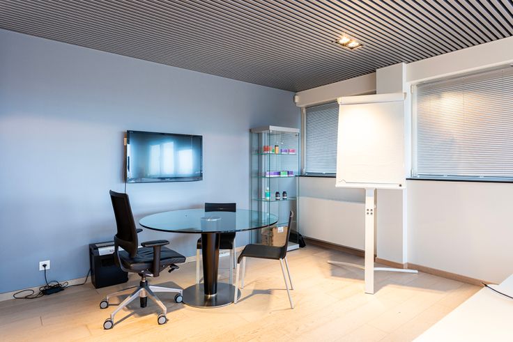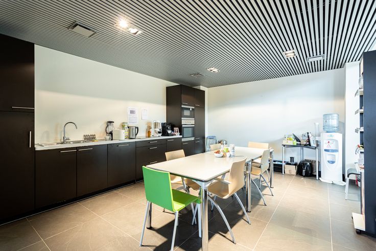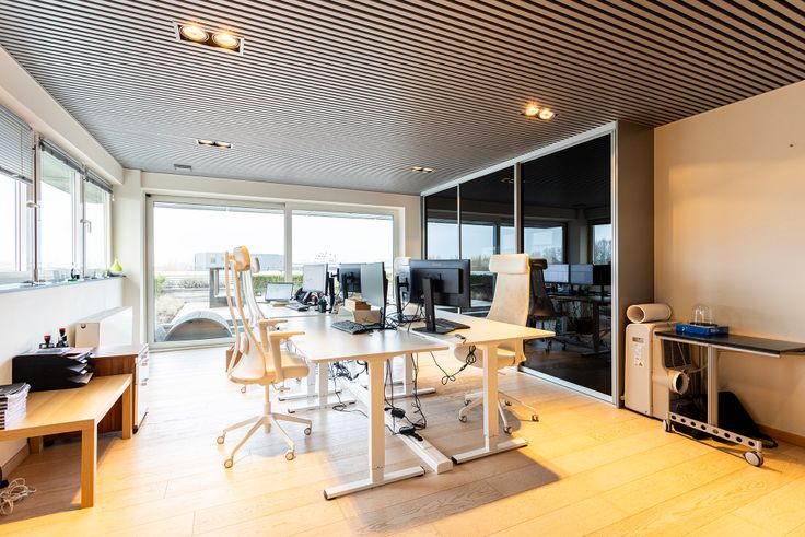 Het middenblok is bestaande uit 3 kantoorruimtes, een meetingroom en het sanitaire blok met bijhorende fitness- en doucheruimte.