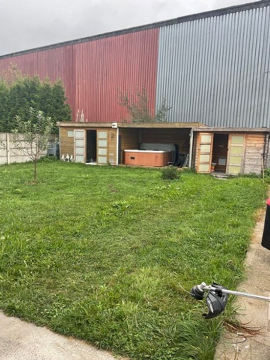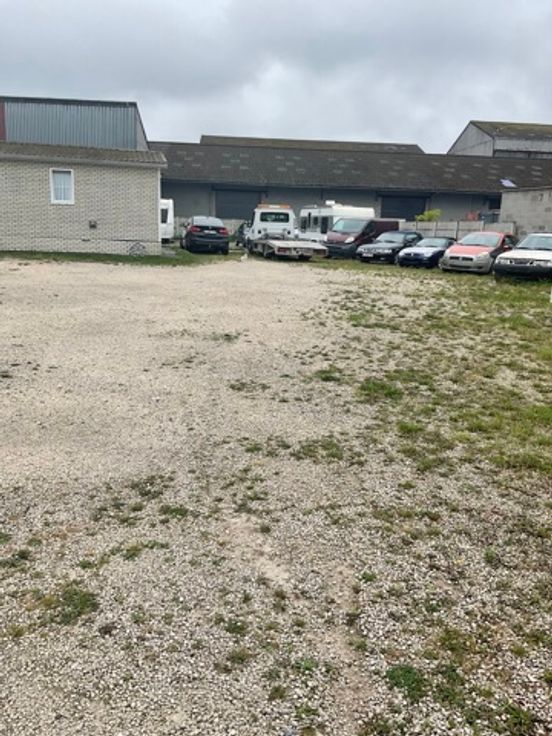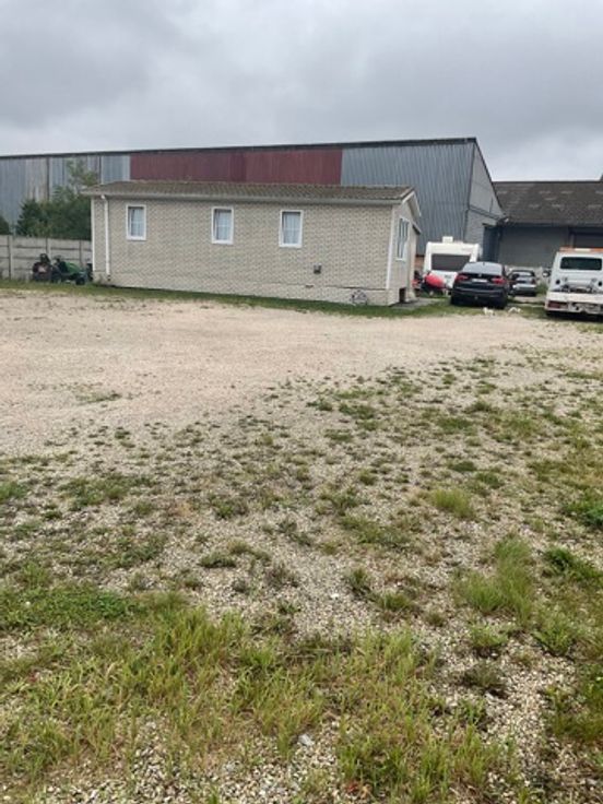 Parcelle 2 : terrain avec un avis favorable d'un permis d'urbanisme pour la construction d'un grand hangar et 2 appartements. Surface terrain : +/- 5 ares