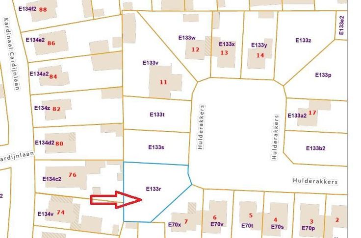 Aan de straat Hulderakkers (8). Lot 9 van verkaveling 006/120(04) dd 26/04/2004, kadastraal gekend sectie E nummer 133/R/P0000. Met een oppervlakte van 667 m². Stedenbouw: woongebied - verkaveling. Geen WORG. P score: A