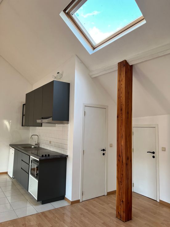 Studio spacieux et très lumineux situé aux 2ème. étage d'une maison de rapport avec 1 seul autre locataire dans l'immeuble. Situé dans une rue calme au centre de Wavre à distance à pied de tout commerce et près de la gare des trains.