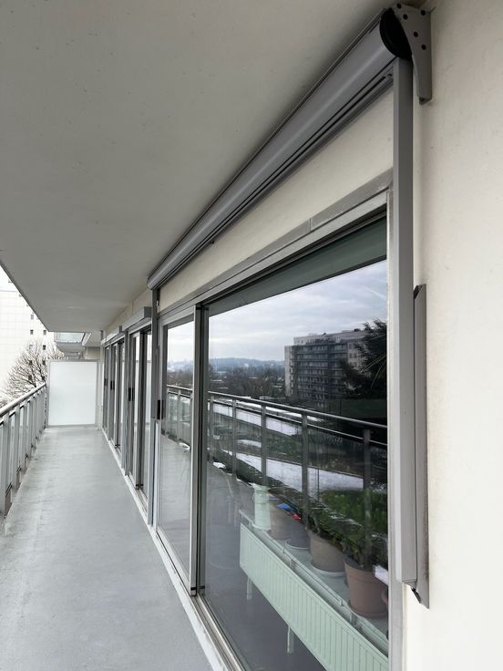 Zuid-west georiënteerd, met automatische zonwering en luifel voor warme zomerdagen.
