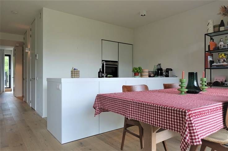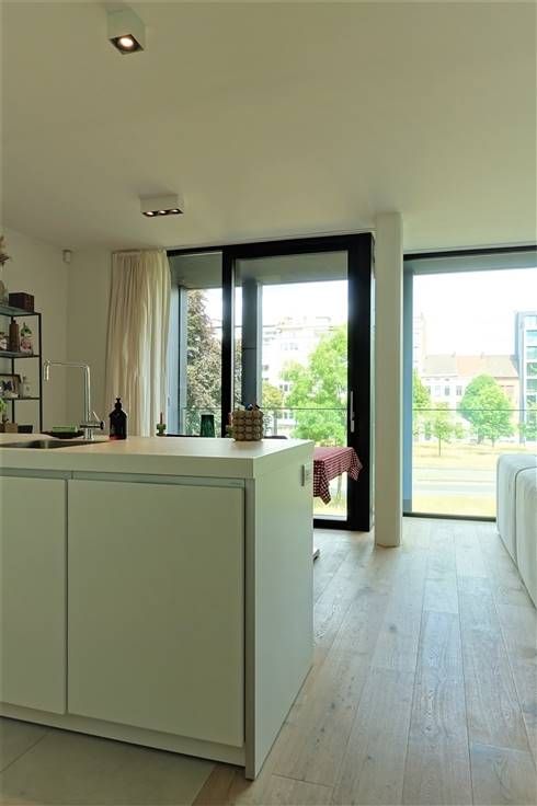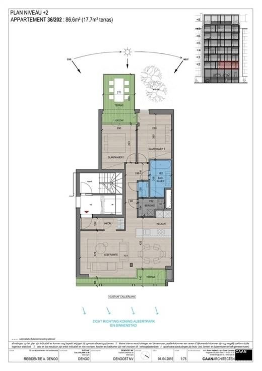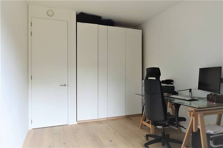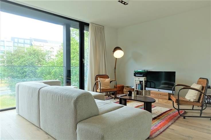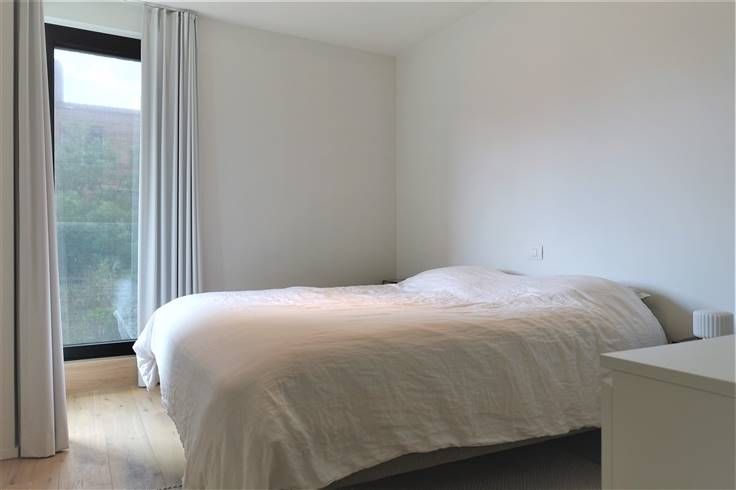 Indeling: inkomhal met glazen deur, ruime -en lichtrijke woonruimte met aansluitend een open geïnstalleerde Bulthaup keuken (oven, koelkast, inductie kookplaat met centrale afzuigkap, vaatwasmachine), berging met aansluiting wasmachine, apart toilet, badkamer (dubbele lavabo, inloopdouche en bad), 2 slaapkamers waarvan 1 met aanpalend terras. Voorzien van verlichting en gordijnen en een alarmsysteem. inclusief ondergrondse parkeerplaats, kelderberging en gemeenschappelijke fietsen- en vuilnisberging.