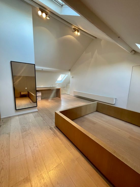•Gelijkvloers: Duplex van 165m² met een extra ruimte aan de voorkant, gas open haard, EPC F, terras, verhuurd voor 2030€ + 80€ gemeenschappelijke kosten, 9-jarige huurovereenkomst.