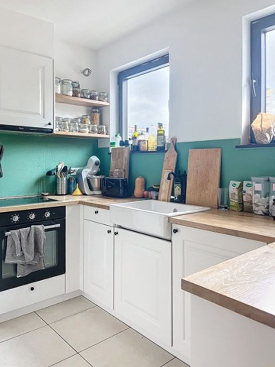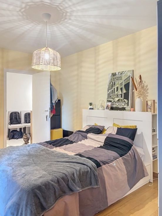 Ruim en instapklaar appartement met zonnig terras en centrale ligging Ontdek dit lichtrijke appartement met 1 slaapkamer, gelegen op de 2de verdieping in een goed onderhouden gebouw. De indeling omvat een ruime inkomhal, een gezellige slaapkamer met douchekamer en toegang tot een klein terras, een comfortabele living met veel natuurlijk licht, een volledig ingerichte keuken en een praktische bergruimte. Geniet van het aangename terras aan de living met prachtig zicht op de Van Overbekelaan. Extra troeven: een kelder voor extra opslag, parlofoon, dubbele beglazing, lift, en elektriciteit conform. Het appartement beschikt over een individuele cv-installatie op gas. **Optioneel:** Binnenstaanplaats beschikbaar voor €18.500. **Maandelijkse lasten:** +/-€150 (inclusief onderhoud van de gemeenschappelijke ruimtes, lift, syndicus, verzekering en elektriciteit van de gemeenschappelijke delen). Ideaal voor starters, koppels of als investering! Mis deze kans niet!