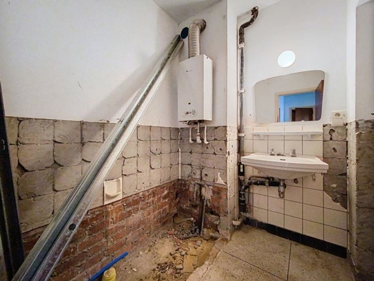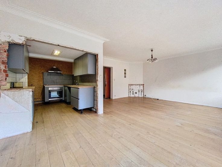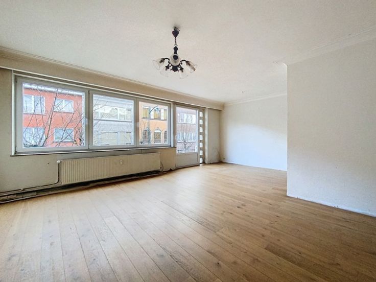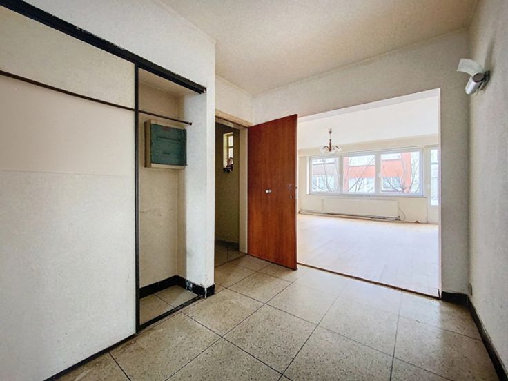 Het appartement is als volgt samengesteld: Een inkomhal, twee slaapkamers, een ruime woonkamer, een keuken, een bijkeuken, een badkamer, een apart toilet, een terras.