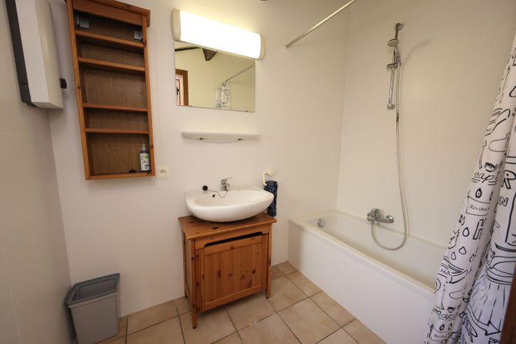 Badkamer met douche, wastafel en toilet