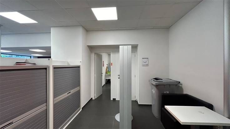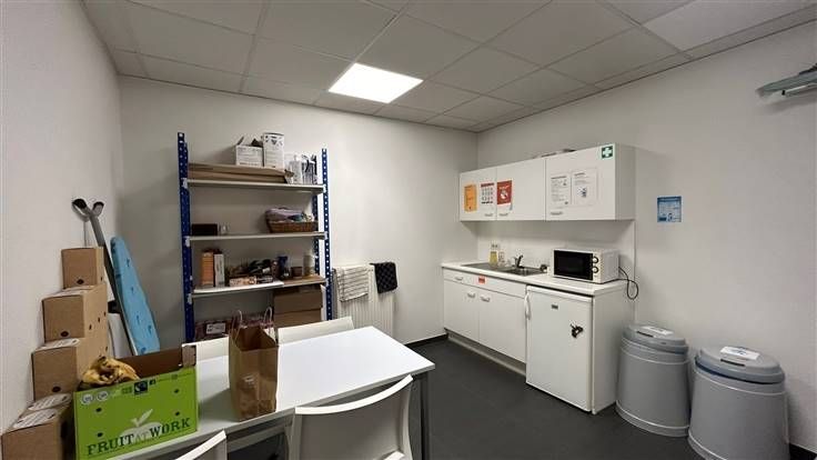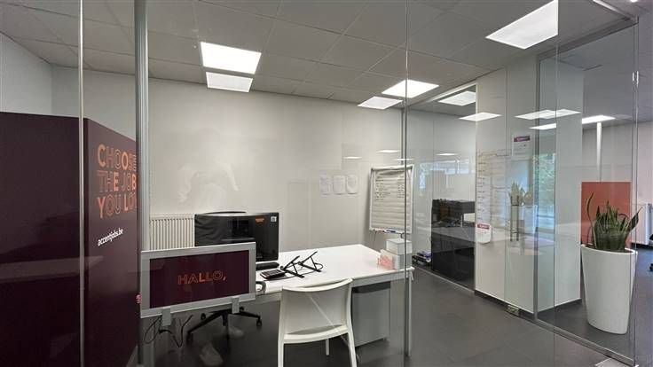Het kantoor beschikt over ruimte voor diverse werkstations en is voorzien van alle nodige faciliteiten, zoals een vergaderruimte met glazen wanden voor extra privacy, een volledig uitgeruste kitchenette waar men terecht kan voor de lunchpauze en koffie en een gastentoilet.