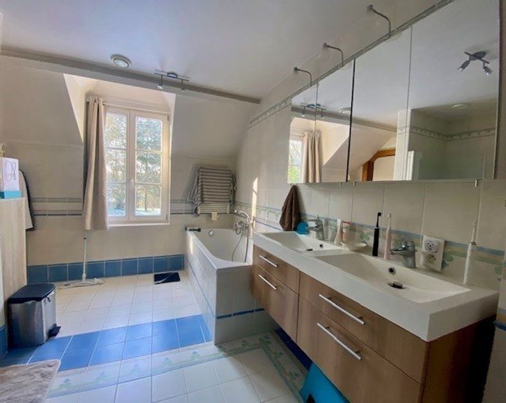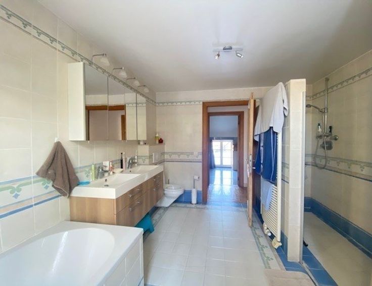 Op een steenworp afstand van La Mazerine, zijn winkels en restaurants, aan het einde van een privé oprijlaan, aantrekkelijke eengezinsvilla (4CH/2SDB) van ongeveer 240m2, genesteld in het groen en in een rustige omgeving op een perceel van ongeveer 38 are met uitzicht over de vallei. Begane grond: hal, gastentoilet, grote woonkamer met open haard en aparte eetkamer in een rij, "Wood Fashion" ingerichte keuken met groot hoog fornuis, ontbijthoek. Op het zuiden gelegen voortuin met parkeerplaats voor meerdere auto's en achtertuin met terras in blauwe hardsteen; op de 1e verdieping: hal die leidt naar 4 slaapkamers en 2 badkamers; op de 2e verdieping: 3 aangrenzende kamers onder het dak met veluxramen; in de kelder: kelder en stookruimte - het bijgebouw wordt momenteel verhuurd.Diverse: dubbele beglazing, vloerverwarming op stookolie (2000 l tank), elektrische boiler, mobiele programmeerbare thermostaat, thermostatische kranen, dubbele beglazing, tuinchalet, septic tank - EPB: D (263kWh/m2.an) n°20190212011154 - Beschikbaar +/- 15 april 2025 De oppervlaktes en informatie worden enkel ter informatie gegeven en zijn niet contractueel bindend. Meer informatie over WWW.HOUSINGANDHUMANS.COM