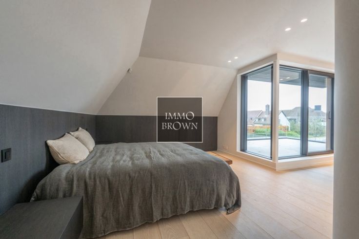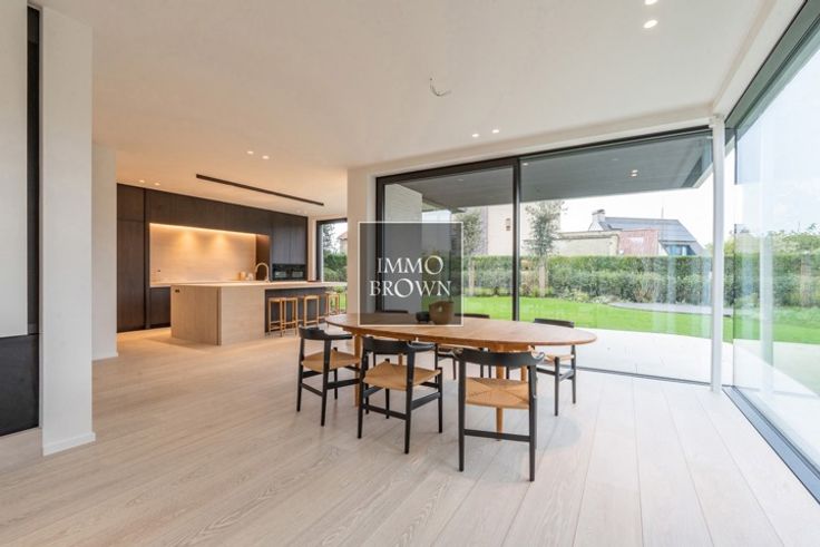 Nieuwbouwvilla te koop in een rustige villawijk in Knokke, voorzien van alle comfort en hoogwaardige afwerking. Indeling van de villa: Gelijkvloers: Inkomhal met gastentoilet. Leefruimte met mooie raampartijen verdeeld in een ruime eetkamer en gezellige zithoek met gashaard. Open keuken met eiland en een aansluitende bijkeuken/wasplaats dewelke direct toegang geeft tot de garage. Overdekt aangenaam terras. Eerste verdiep: Masterbedroom die toegang geeft tot een mooi terras met zicht op de tuin, ruime dressing en badkamer (dubbele lavabo, ligbad, inloopdouche en toilet). Tweede slaapkamer met privatieve douchekamer en ingemaakte kasten. Derde slaapkamer met dressing en douchekamer (inloopdouche en lavabo). Apart toilet in de nachthal. Tweede terras toegankelijk via de 3de slaapkamer en nachthal. Tweede verdiep: 4de volwaardige slaapkamer met ingemaakte kasten. Bureauhoek in de nachthal. Douchekamer (Inloopdouche, lavabo en toilet) Aparte technische ruimte. Mogelijkheid tot het aanleggen van een zwembad. Alle inlichtingen beschikbaar via ons kantoor.