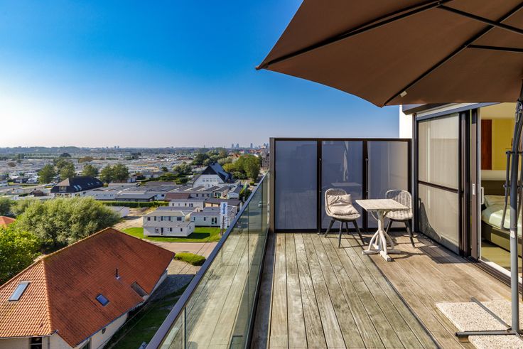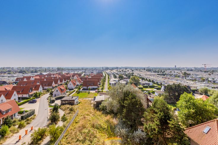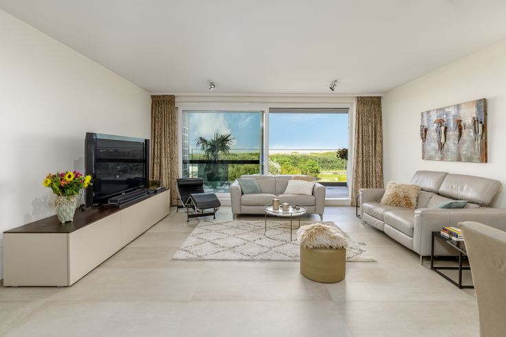 Inkomhal met ingemaakte vestiairekast, gastentoilet en ruime berging. Via de glazen deur komt u in de ruime woonkamer (45m²) binnen. Aansluitend met de woonkamer komt u op het terras vooraan (11m²) waar u kan genieten van het open zicht op duinen en zee!