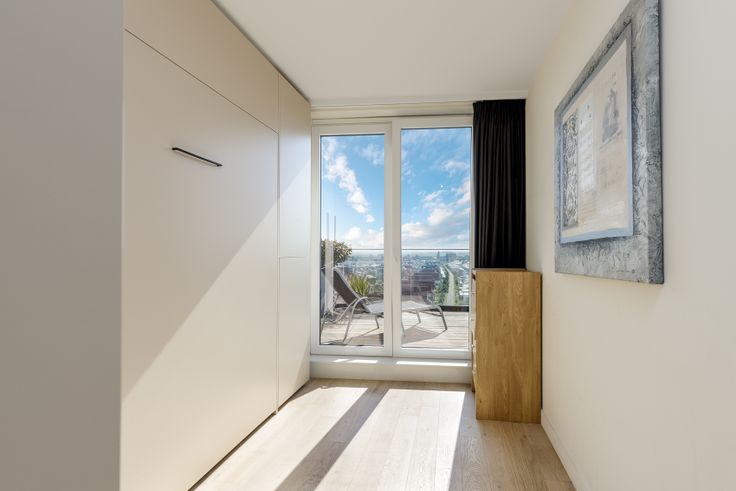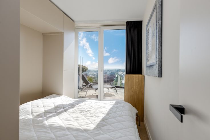 Via de trap komt u in de nachthal met badkamer voorzien van: inloopdouche met infraroodverlichting, dubbel lavabomeubel en toilet. Slaapkamer 1 voorzien van dressingkasten en geïntegreerde ruimte voor wasmachine en droogkast. Slaapkamer 2 is voorzien van kastenwand met inklapbaar tweepersoonsbed en koelkast. Beide slaapkamers geven uit op het privé dakterras (16m²) dat zuidgeoriënteerd is. Dankzij de ingewerkte koelkast in slaapkamer 2 hoeft u niet naar beneden voor iets fris. Hier kan u privé zonnen met panoramische verzichten.