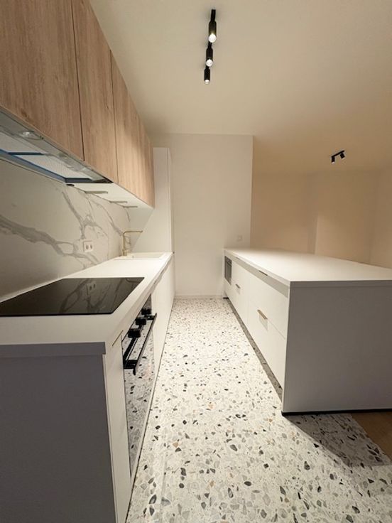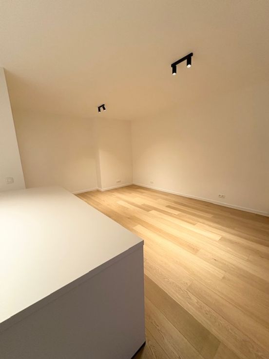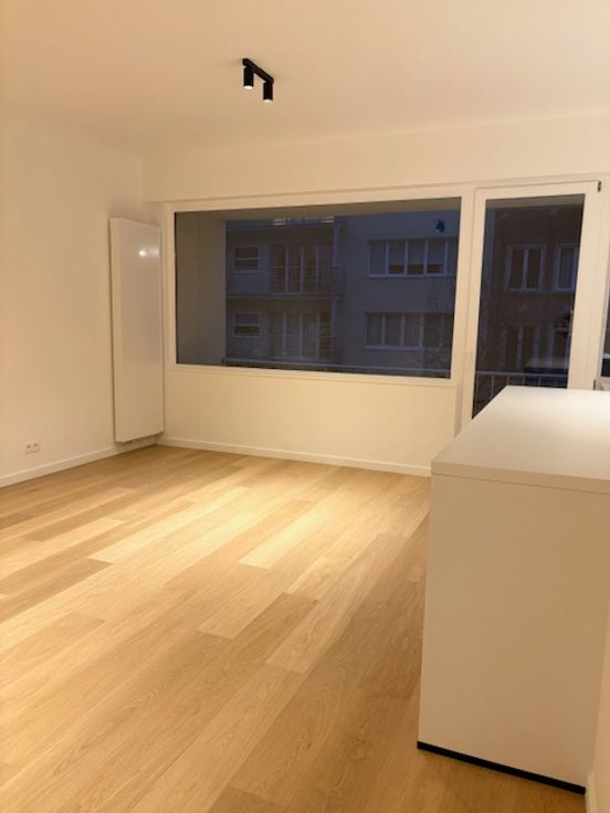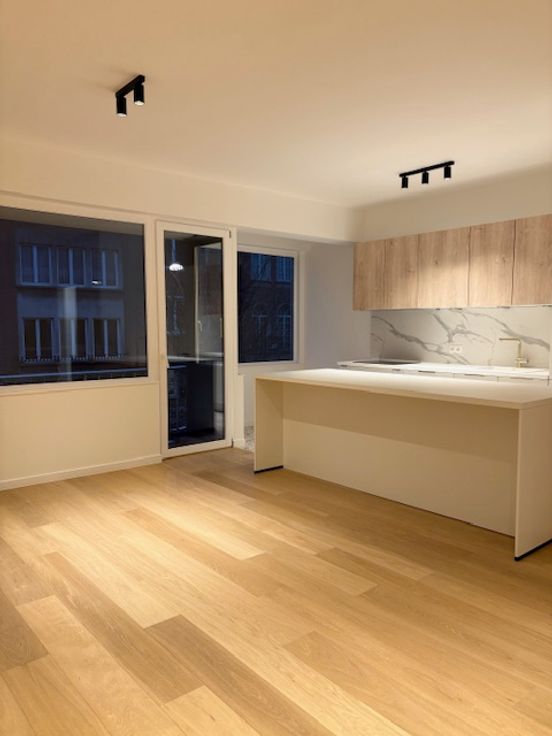 Bel appartement, situé entre la place de la petite suisse et rue de l'université, deux chambres entièrement rénové avec des matériaux de qualité, cuisine tout équipée (réfrigérateur-congélateur, four, taque, hotte, micro-onde, lave-vaisselle) ouverte dans le living, electricité entièrement refait avec attestation, ainsi que les circuits de chauffage et radiateurs neufs, parquet chêne, salle de bain entièrement carrelée, toilette séparée. Possibilité garage boxe en supplément.