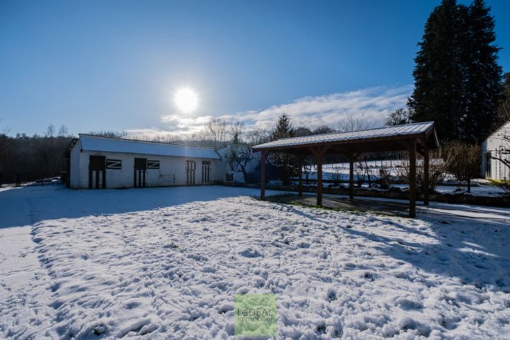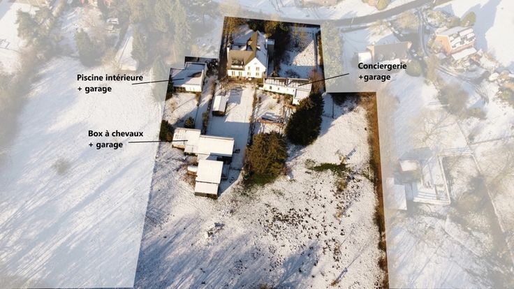 Nichée sur un hectare de terrain, cette propriété d'exception comprend une villa spacieuse de 240 m² (hors grenier aménageable), une conciergerie de 75 m², une piscine couverte, trois garages, plusieurs boxes à chevaux et un atelier (ancienne forge).
