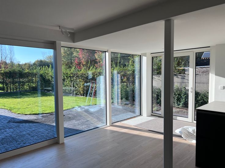 Alle ramen en deuren werden vernieuwd en voorzien van dubbel glas en waar nodig ook screens (te bedienen via schakelaar of te programmeren via de domotica).