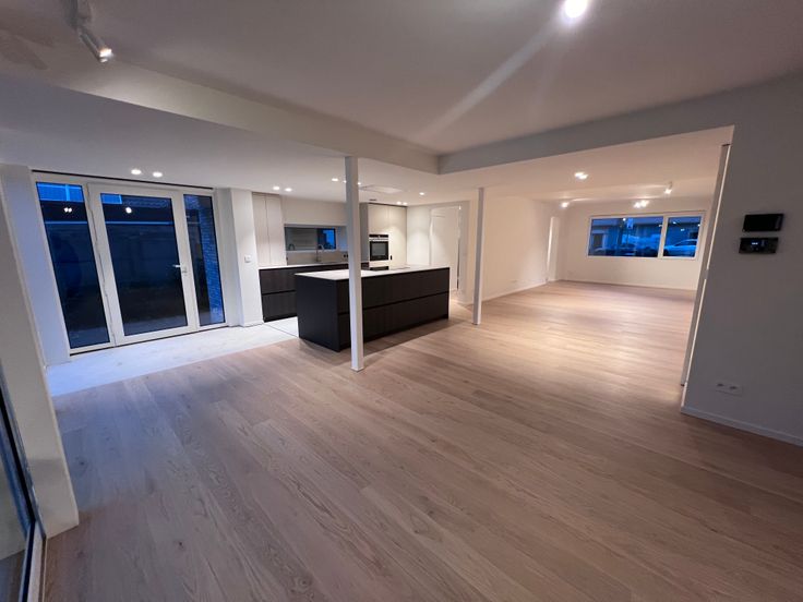 Een ruime lichtrijke hal, met 3 slaapkamers, 1 badkamer met toilet, 1 douchekamer met toilet en een multifunctionele open ruimte.