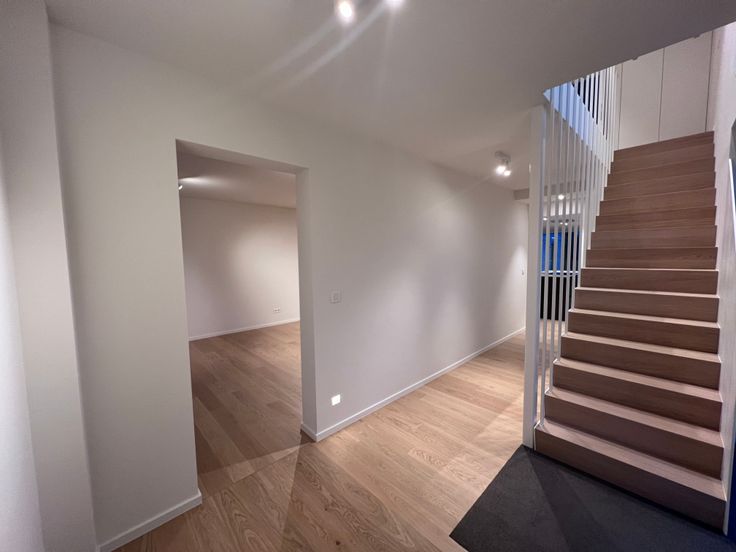 ruime traphal met afzonderlijk toilet, een mooie open, zeer lichtrijke leefruimte met ruime eethoek, zithoek en een volledig op maat gemaakte keuken (voorzien van inductiekookplaat, regeneratiedampkap, frigo, oven en vaatwasser).