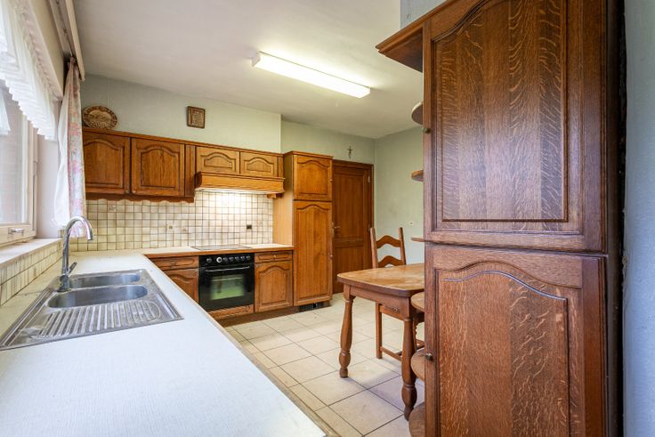 Te renoveren driegevelwoning te Meerbeke met vlotte bereikbaarheid tot het centrum van Ninove, winkels, eet- en drinkgelegenheden, scholen en sport- en culturele aangelegenheden etc. We komen betreden de woning langs de inkomhal met apart toilet. We wandelen binnen in de leefruimte, met plaats voor salon en eetruimte, met aansluitend een geïnstalleerde keuken. Verder op de gelijkvloerse verdieping bevinden zich reeds twee ruime slaapkamer alsook de badkamer uitgerust met bad met douche, lavabo en toilet. Op de eerste verdieping treffen we twee ruime slaapkamers en een zolder met opbergmogelijkheid of potentieel tot extra slaapkamer of bureauruimte. Verder kan men genieten van de grote tuin met een overdekt terras waar het zeer aangenaam vertoeven is. Tenslotte beschikt de woning nog over een garage en staanplaatsen alsook de kelder die dienst kan doen als opbergruimte. Bel voor meer informatie en voor een eventueel bezoek ter plaatse: 02 356 00 00. De gegeven informatie en opgegeven oppervlaktes zijn louter indicatief en houden geen enkele juridische verbintenis in.