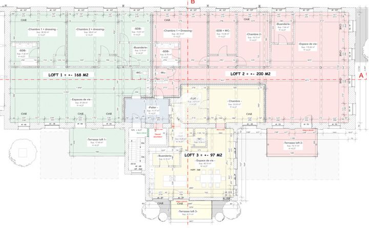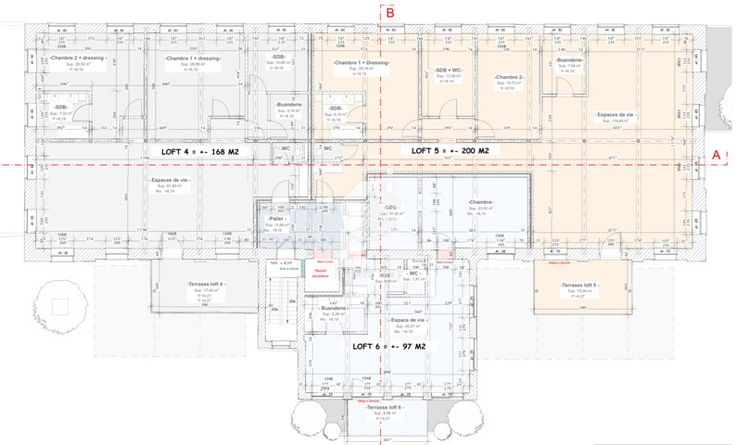 Met een totale bruto-oppervlakte van 1.307 m², verdeeld over drie niveaus (377 m² op de begane grond, 465 m² op de eerste en tweede verdieping), omvat het project ook 12 parkeerplaatsen. De zeer gewilde industriële loftstijl past perfect bij dit type gebouw en biedt een moderne, lichte en ruime leefomgeving.