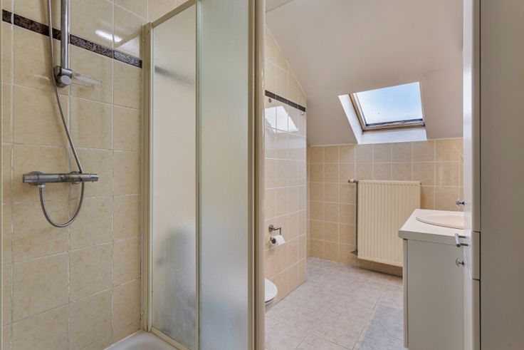 Dit instapklaar huis met 3 slaapkamers ligt in het centrum ... Achter de mooie gevel schuilt dit gezellig eigendom. Op de benedenverdieping vinden we de inkomhal en de immens grote garage met elektrische poort. Hier is enorm veel plaats voor 2 wagens, fietsen, .... Er bevindt zich hier ook nog een heel grote wasberging. Achteraan de garage is er de toegang tot de grote tuin met terras. Het is hier genieten in alle rust. Bovengekomen is er de living die heel ruim en lichtrijk is dankzij de grote raampartijen. Er is hier echt een zee aan ruimte. U hebt er een goed zicht op de straatzijde. De open keuken bevindt zich langs de achterzijde. In de keuken is er zeker ook plaats om een eethoek te maken. Vanuit de keuken kunnen we naar het terras op het 1e en hebben we ook een mooi zicht op de leuke tuin. Naast de keuken is er ook hier weer een heel handige berging. Op de eerste verdieping is er ook nog een gastentoilet. Op deze verdieping zijn ook overal rolluiken aanwezig. Op deze eerste verdieping zijn er verder ook nog een apart toilet en een badkamer met douche en lavabo. De 3 slaapkamers (2 grote en 1 kleine) bevinden zich op de tweede verdieping. Hier is ook de badkamer met lavabo, douche en toilet. Ook op deze verdieping is er een berging. Via een valtrap kunnen we naar de zolder. Mits het steken van een vaste trap kan hier eventueel ook nog een extra kamer worden gemaakt. Enorm goed EPC! Centrale verwarming op aardgas. Dubbele beglazing. Grote garage. Regenput. Wateron