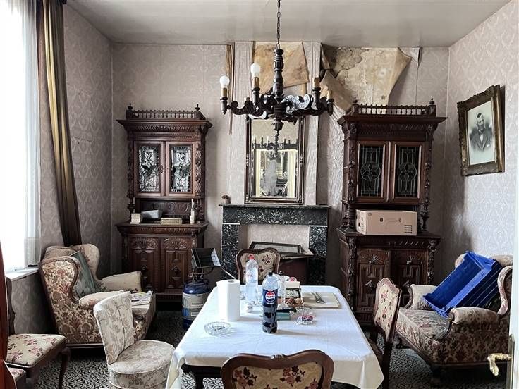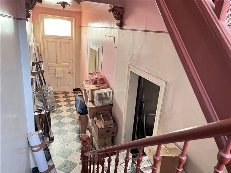 Bij aankomst valt de traditionele bakstenen façade op die een charmante uitstraling geeft. Binnenin is er een overvloed aan ruimte en tal van originele details, zoals sierlijke kroonluchters en authentieke schouwen, die kunnen worden hersteld tot hun volle glorie.