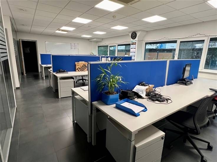 Kantoorruimte van 505 m² verdeeld over twee gelijke verdiepingen. De ruimte kan volledig gehuurd worden of opgesplitst per verdieping.