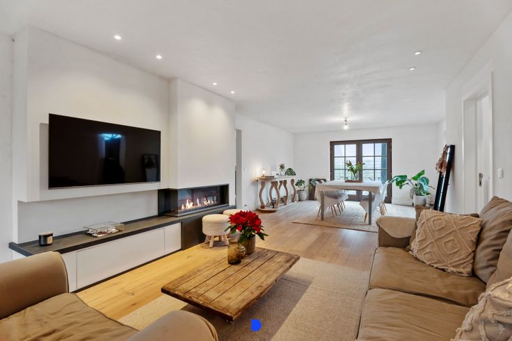 Gezellige living in parket met gashaard.