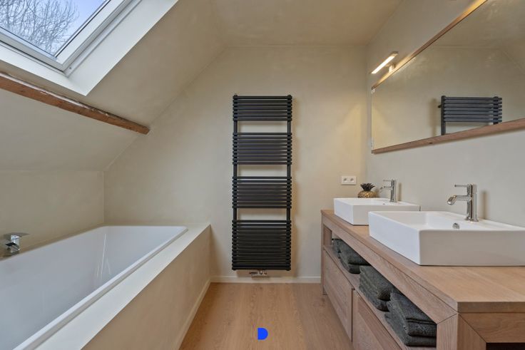- badkamer met ligbad, toilet en dubbel lavabomeubel