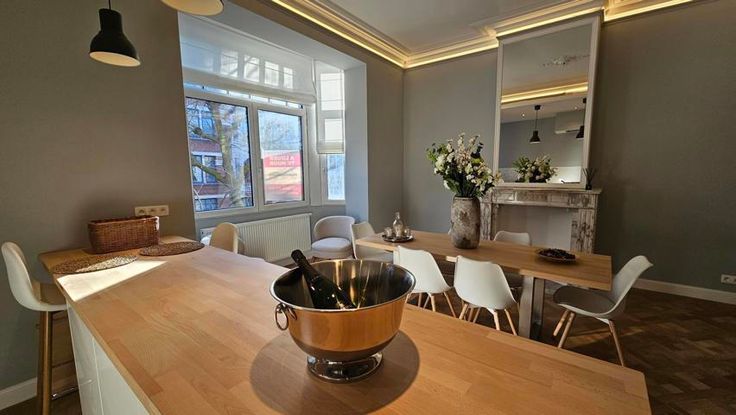 UCCLE - SUPERBE appartement MEUBLE situé au 1er étage d'une petite copropriété sans ascenseur. A proximité immédiate des transports en commun, des commerces, des parcs et du ring. Entièrement aménagé avec goût, il se compose d'un hall d'entrée avec vestiaire, lumineux séjour de +/- 25m² avec nouvelle cuisine ouverte super équipée (frigo/congel, plaque de cuisson vitro, hotte Novy, four, emplacement pour M.O, LV), spacieux salon en parquet, 1 chambre de +/- 10m² avec 1 lit de 2 personnes + dressing, toilette séparée, salle de douche à l'italienne avec 2 lavabos, coin buanderie, terrasse côté arrière. Au sous-sol: 1 cave. Provision de charges: 30€/mois pour les commun. PEB: C- LIBRE IMMEDIATEMENT.