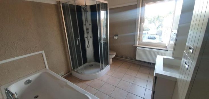 SE COMPOSANT COMME SUIT : Sous-sol : 2 caves (chaufferie chaudière gaz à condensation BULEX de 2018) Rez : Hall d'entrée (+/- 13 m²), Salon/Living (+/- 17 et 16 m²), cuisine-équipée (+/- 11 m²), terrasse carrelée, Garage, petit atelier, chalet de jardin et jardin Etage : Hall de nuit, 2 chambres (+/- 13 et 20 m²), salle de bains avec douche et wc (+/- 10 m²) Le tout sur 5 ares 30 ca.