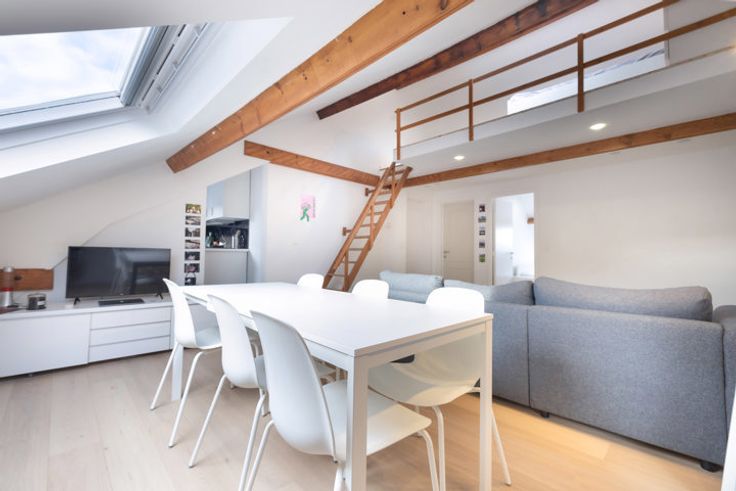 Tussen de Louizalaan en het levendige en trendy Flageyplein, in de buurt van de prachtige Etangs d'Elsene en dicht bij een groot aantal winkels, restaurants en vervoersverbindingen, vindt u een prachtig appartement van 80 m² met 2 slaapkamers, volledig gerenoveerd met nieuw, eigentijds meubilair en parketvloeren. Bestaande uit een slaapkamer met ingebouwde kasten + een slaapkamer op de mezzanine, een luxe marmeren badkamer, een superuitgeruste nieuwe open keuken die uitkomt op een lichte woonkamer, vaste lasten van € 100 (eigen water, eigen opstalverzekering, schoonmaak, elektriciteit voor gemeenschappelijke ruimtes, internet, kabel-tv), individuele gas- en elektriciteitsmeters overgenomen door de huurder.