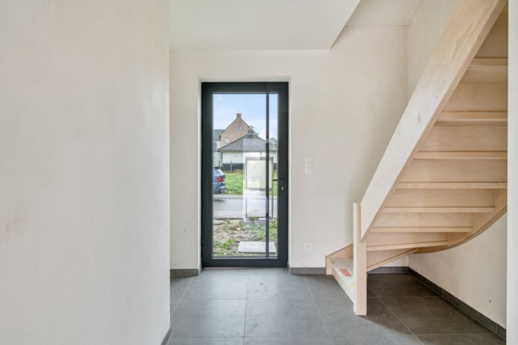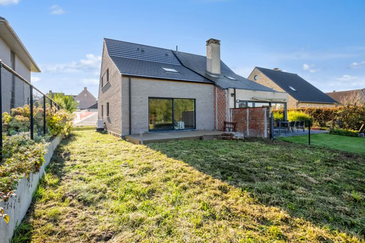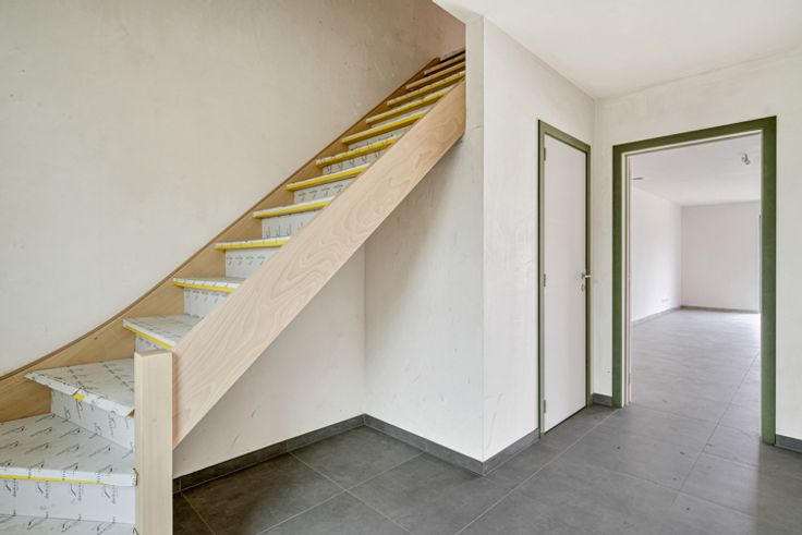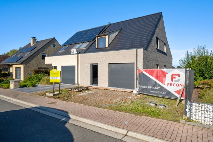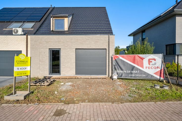 In een rustige wijk in Zottegem, op wandelafstand van het centrum bevindt zich deze nieuwbouwwoning type half open bebouwing op een perceel van 2are 98ca. De woning is momenteel in aanbouw en is als volgt ingedeeld:  Op het gelijkvloers hebben we een inkomhal met vestiairehoek, een trap naar de eerste verdieping en een gastentoilet (aangesloten op regenwater). Verder op het gelijkvloers vinden we een eethoek en ruime zithoek met aansluitend de open keuken die voorzien is van een kookeiland (keuken is vrij te kiezen volgens lastenboek). Tevens is er op het gelijkvloers een inpandige garage voorzien met aansluitende berging met de voorzieningen voor wasmachine en droogkast. Via de trap komen we op de eerste verdieping waar we drie ruime slaapkamers hebben, een ruime badkamer (inloopdouche en dubbele spoeltafel) en de nachthal met afzonderlijk toilet.  Via een uitschuifbare trap komen we op de zolder die dienst doet als bergruimte. Enkele pluspunten van deze nieuwbouwwoning zijn alvast:  Regenwaterput 5000L - E-PEIL 20 - Ventilatiesysteem TYPE D - afwerking naar eigen smaak volgens lastenboek. Wenst u dit pand te bezoeken? Contacteer Saimen op 055 35 00 45