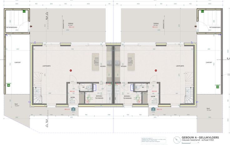 Beide woningen op het plan staan te koop, oplevering eind van het jaar