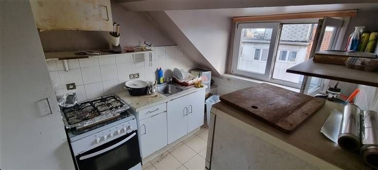 Sorry er is geen nederlandse vertaling beschikbaar. Situé sur la Chée de Gand à 2 pas de la maison communale et du quartier Antoine Dansaert! Nombreuses facilités de moyens de communication comme le métro, bus, tram, ... Idéal pour un 1er achat, pied à terre ou comme un investissement! Nous vous proposons au 4ème et dernier étage (immeuble sans charge), un appartement 1 chambre de 46m² à rafraîchir! Il se compose comme suit : un débarras + chaudière sur le palier d'escalier, un hall d'entrée, une salle de douches + WC, un séjour avant, une cuisine avant, une grande chambre arrière. Atouts : Petit immeuble sans charges, électricité conforme (2033), loué à 617€/mois (indexé), lumineux, double vitrage en PVC, dernier étage, cave privative, compteurs séparés. Chaudière individuelle au gaz de 2007. PEB : G. Frais de géomètre et d'acte de base à charge de l'acquéreur. Plus d'infos ? Appelez-nous au 0487/569.569 ou visitez notre site www.centralimmo.be