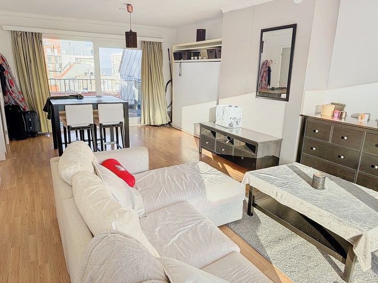 Dit appartement ligt op de zevende verdieping op de Boulevard van Heist met zijn gezellige restaurants en leuke winkels, ook het strand ligt net om de hoek. Er zijn 2 grote zonneterras aanwezig, deze hebben een totale oppervlakte van 30m², deze zorgen ervoor dat u op elk moment van de zon kan genieten en dat u een mooi open zicht hebt aan de voorzijde richting het binnenland. Dit appartement kan, mits de nodige moderniseringswerken, een ideale vakantiebestemming worden. Er is een private kelder voorzien.