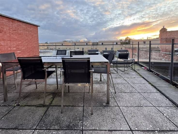 Het pand beschikt over een ruim dakterras, ideaal voor ontspanning of informele meetings in de frisse lucht. Bovendien zorgen de grote ramen voor veel natuurlijk licht en een aangename sfeer op alle verdiepingen.