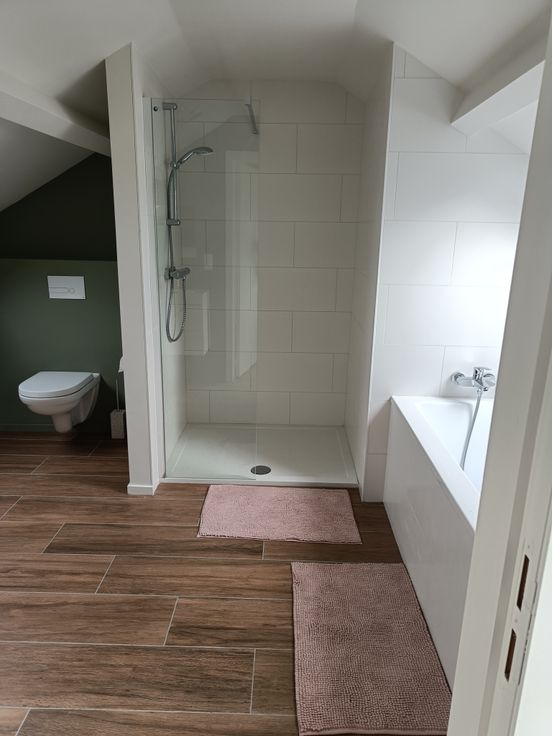 2e verdieping: 1 slaapkamer van 18 m² met badkamer (douche, bad en toilet)