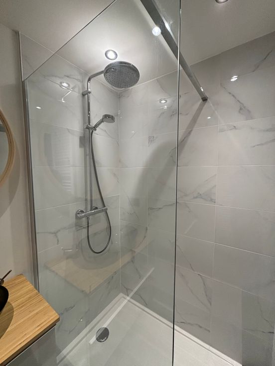 • Une salle de douche contemporaine