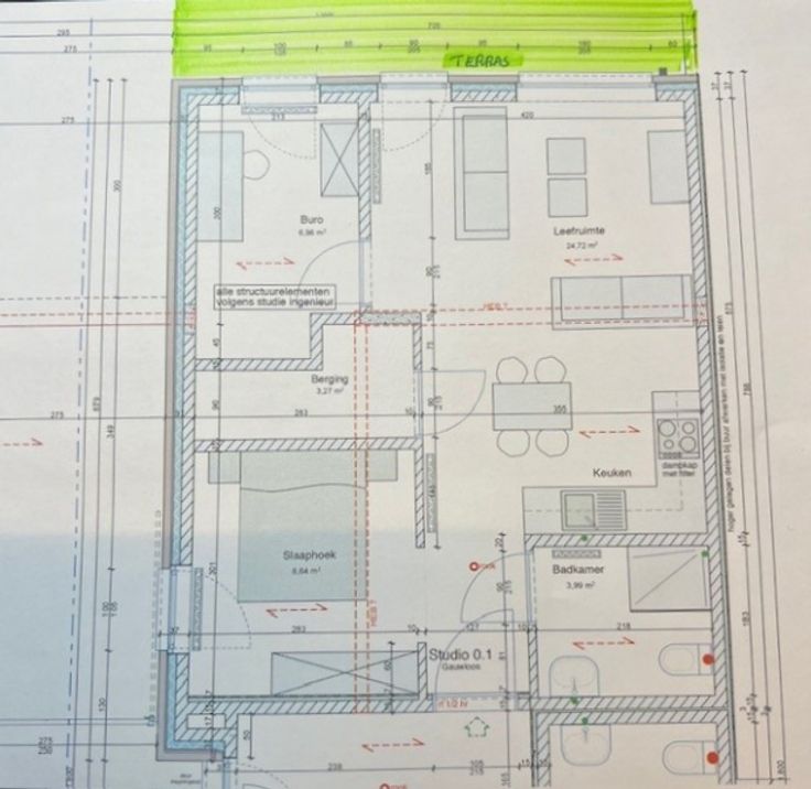 hal, gezellige living met zicht op vrij groot terras ( echt iets leuks mee te doen ) en toegangsdeur naar garage ( elek poort ) + 20 000 EURO