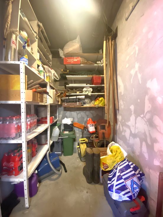 In de kelderverdieping: de autostaanplaats en berging dewelke kan afgesloten worden