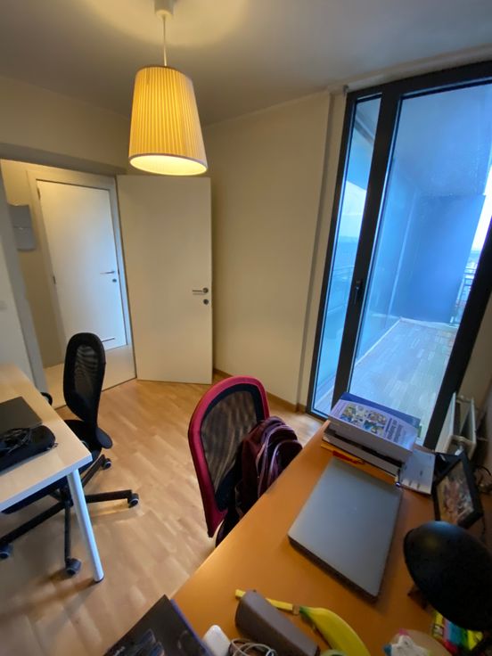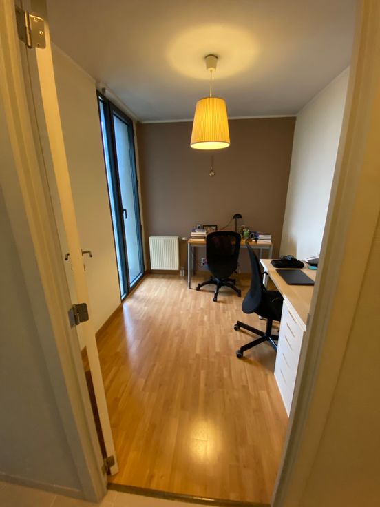 - 1 grote slaapkamer (momenteel slaapkamer), 1 minder grote slaapkamer (momenteel bureel).