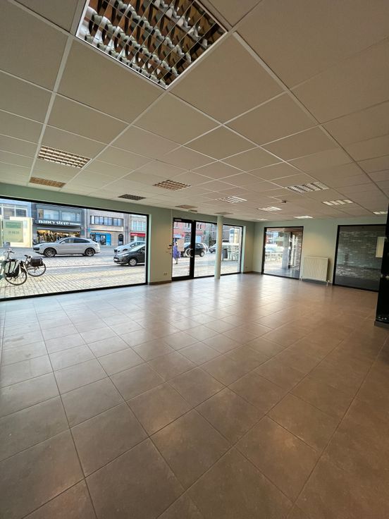 Uiterst commercieel gelegen handelsruimte van 132m2 met veel mogelijkheden: kantoor/showroom/bloemenwinkel/ kapsalon/ interieur- of decoratiewinkel.