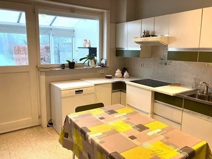 Deze ruime woning bestaat uit een inkomhal met toilet, living met eetkamer en een aparte keuken.