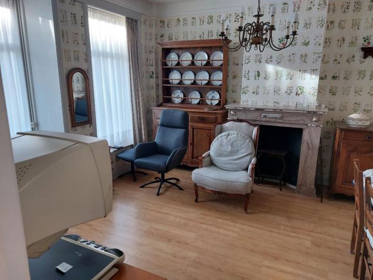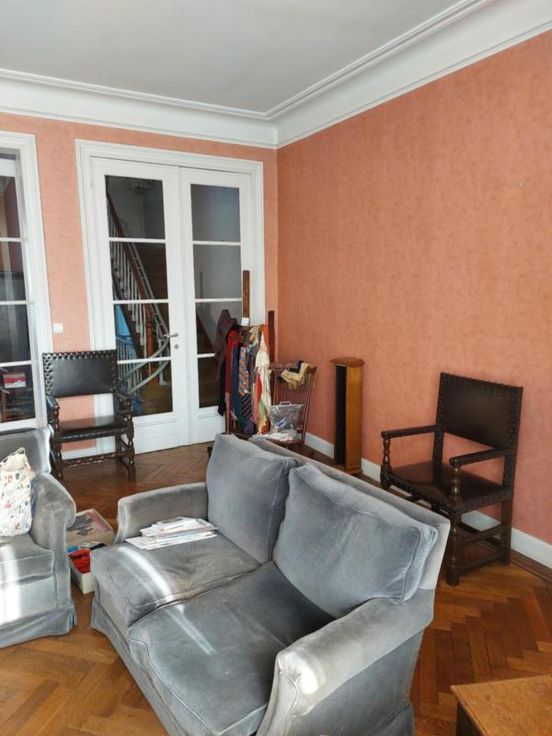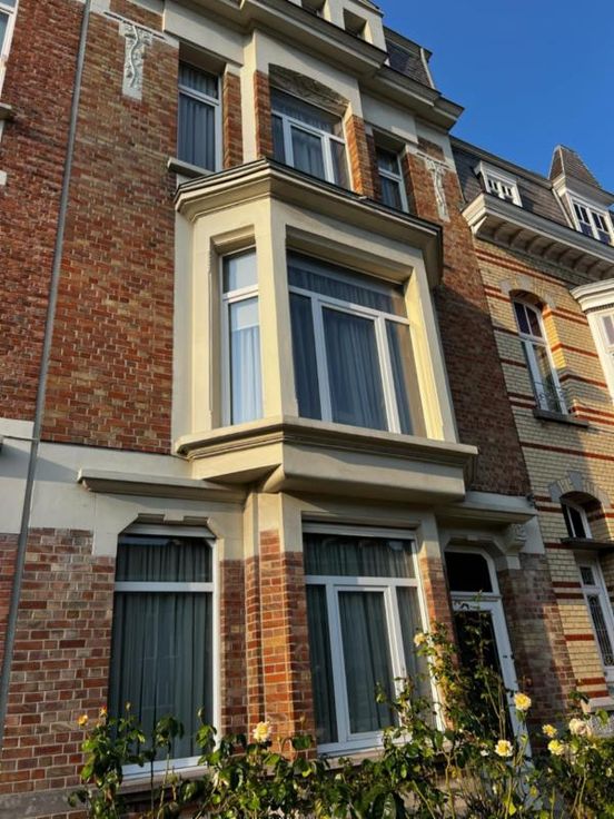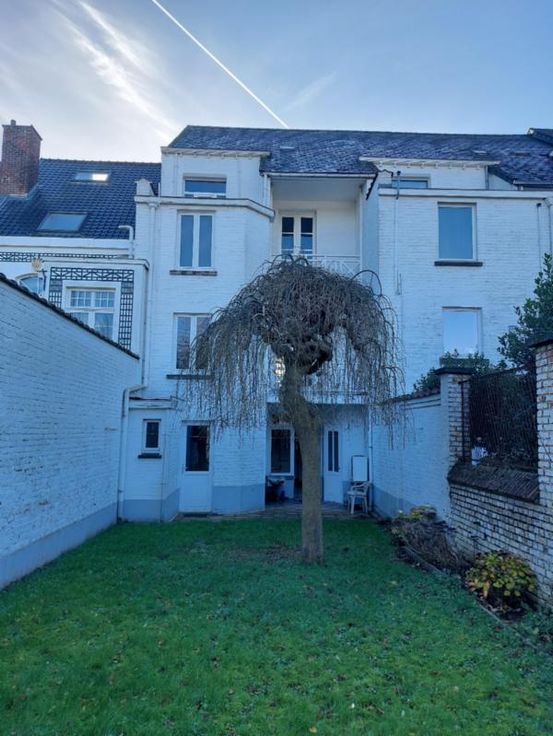 Maison d'habitation sur 2 ares 30 centiares comprenant: -au rez: hall d'entrée, salle-à-manger, cuisine, vestibule, wc, entre-étage : petit salon -au 1er étage: un très grand salon lumineux donnant accès à une terrasse couverte, entre-étage : salle de bain (douche, évier, wc); -au 2e étage: une grande chambre, un bureau ou chambre, une pièce pouvant être destinée à un dressing; -au 3e étage: 2 chambres (dont une avec lavabo), grenier Caves Jardin et cour couverte Chauffage central gaz de ville Maison en très bon état