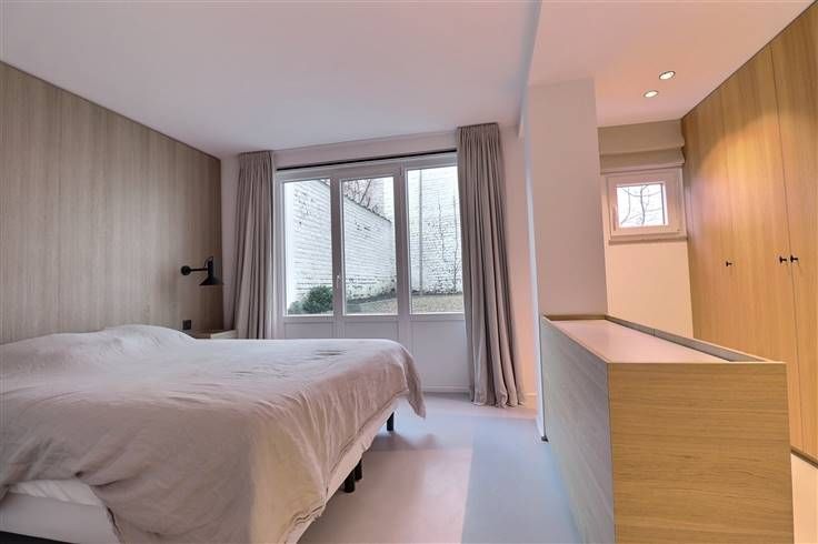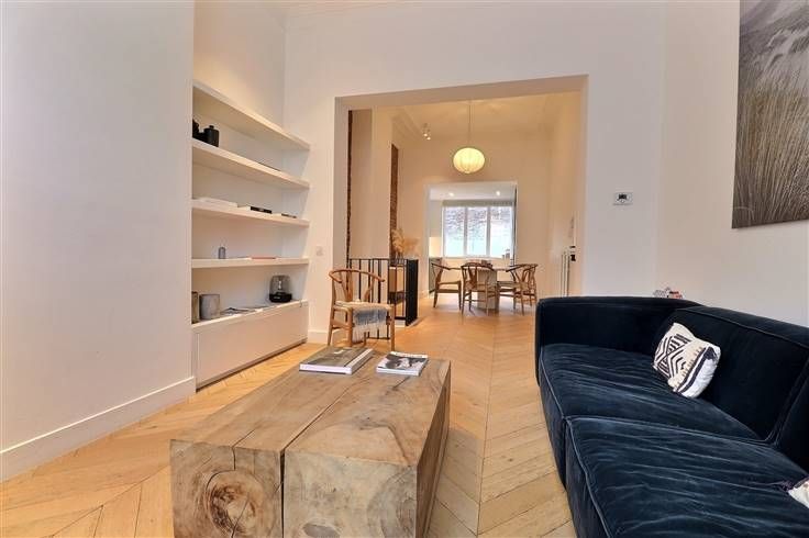 Sorry er is geen nederlandse vertaling beschikbaar. Schaerbeek à la limite d' Etterbeek - Très bel appartement meublé avec goût situé non loin de la place des chasseurs ardennais et du parc du cinquantenaire à cheval entre le quartier Plasky et le quartier européen. Ce magnifique duplex de 100m² qui vient d'être rénové par un architecte et se situe à proximité de toutes les commodités (écoles, commerces, bars, restaurants, transports publics, parc,...). L'appartement se compose comme suit, Au bel étage: Un grand living et une cuisine super équipée (lave vaisselle, four, micro onde, taques, hotte, frigo,...) en enfilade de +- 50m² A l'entre sol: Deux belles chambres meublées (lits, dressings,...) de +- 15m² - Une salle de douchemoderne - Un WC séparé - Un accès au jardin/terrasse situé à l'arrière de l'immeuble. Au niveau des communs: Un local à vélo avec prise électrique - Une buanderie équipée - Un local poubelle. Les charges communes sont de 60€ : provision des communs (électricité, femme de ménage,...) Les charges privatives sont individuelles. PEB G (en cours de révision car grosses rénovations effectuées depuis) L'entrée de la maison et de l'appartement fonctionne avec un code. Pour toutes visites, veuillez contacter le +32(0)478.68.67.01