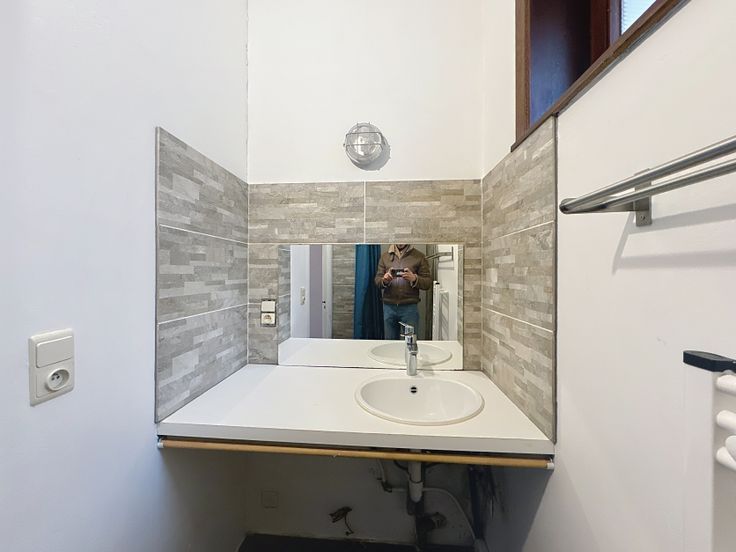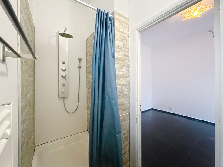 L’appartement se compose d’un spacieux living, d’un espace salle à manger, d’une cuisine équipée, ainsi que d’une chambre à l’arrière avec salle de bain attenante. La salle de bain offre également un espace prévu pour installer une machine à laver et un sèche-linge.