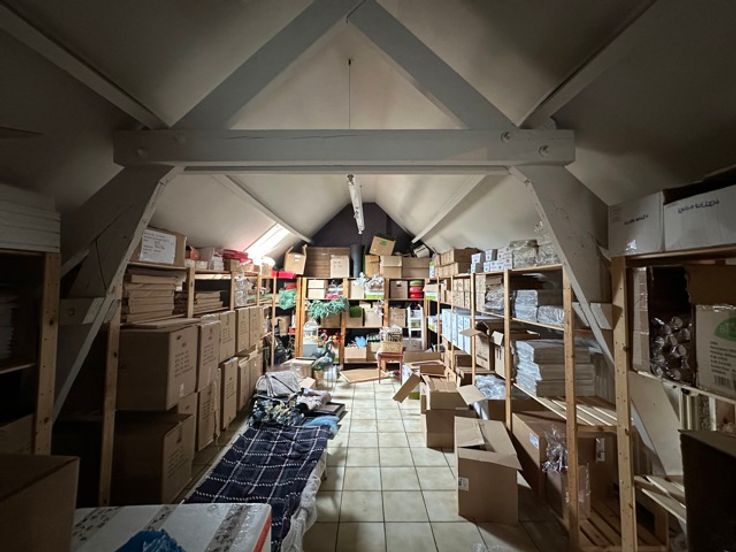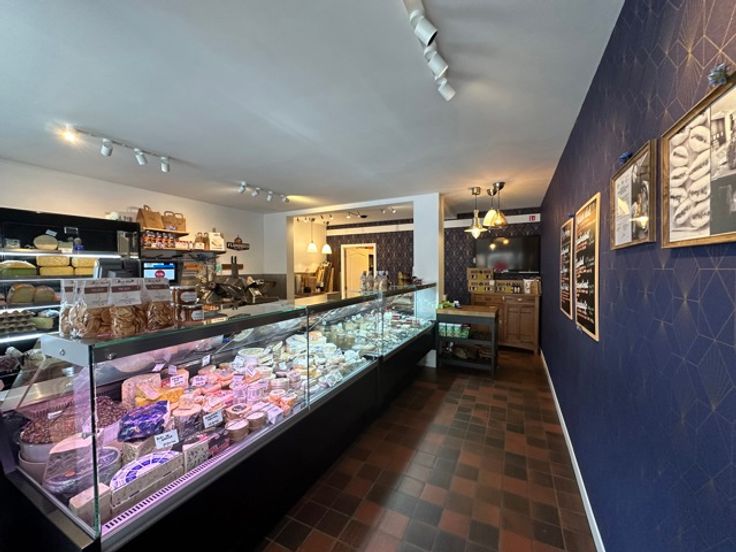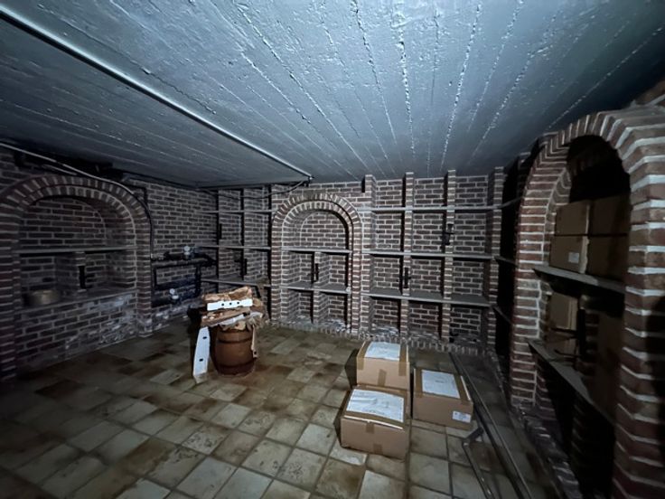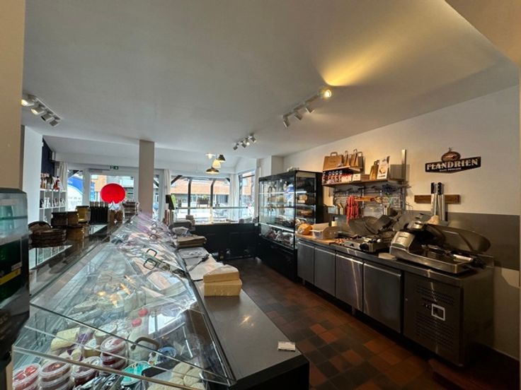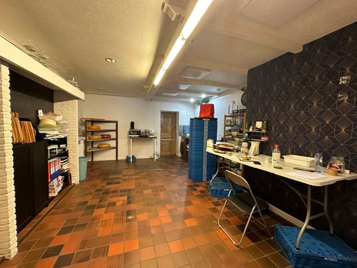 Indeling: winkelruimte , keuken of voorbereidingsruimte, toegang naar de open gewelfde kelder (voorheen wijnkelder),
