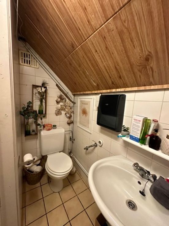 achteraan is er een studio met wc, douche, wastafel en open ruimte die kan dienst doen als bureel/kantoor/ontspanningsruimte of stockage.