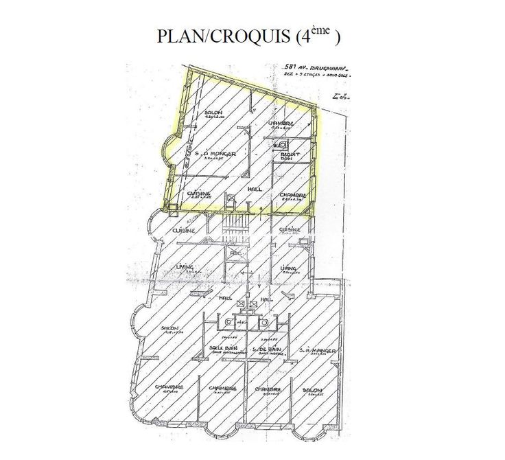 Uccle-Globe, dans la rue Fourragères, avec son entrée commune côté Brugmann (581), au 4e étage sur 5 d'un immeuble de caractère bâti en ± 1930, avec ascenseur (mis aux normes), appartement d'env. 85 m² (selon Peb) + sa cave + mansarde au dernier étage. Hall-couloir distribuant : cuisine meublée, salon/salle à manger, 2 chambres, salle de bains, wc. Jolie vue dégagée sur ilot intérieur. Etat général: à améliorer. Pas de balcon, ni terrasse, ni garage. Double vitrage Pvc. Chaudière individuelle au gaz, récente. Electricité conforme. En sous-sols: une cave. Au dernier étage: une mansarde (pas de chauffage) d'env. 10 m² (n° 20) Faibles charges communes: ± 100 €/mois (honoraires syndic inclus). RC de base: 823 € RC indexé: 1.791 € Précompte: 902 € Libre d'occupation. PEB: E- Documents utiles (PV d'AG, charges, syndic, etc.) disponibles sur simple demande via lien Dropbox. RU demandés. Visites sur rendez-vous: 0475 26 37 74 ou info@pim.be