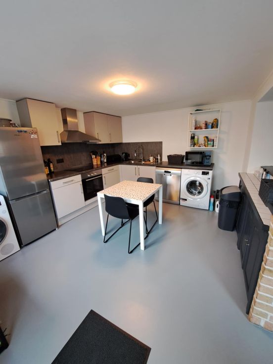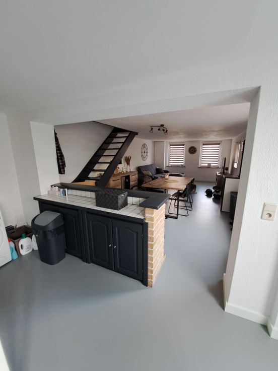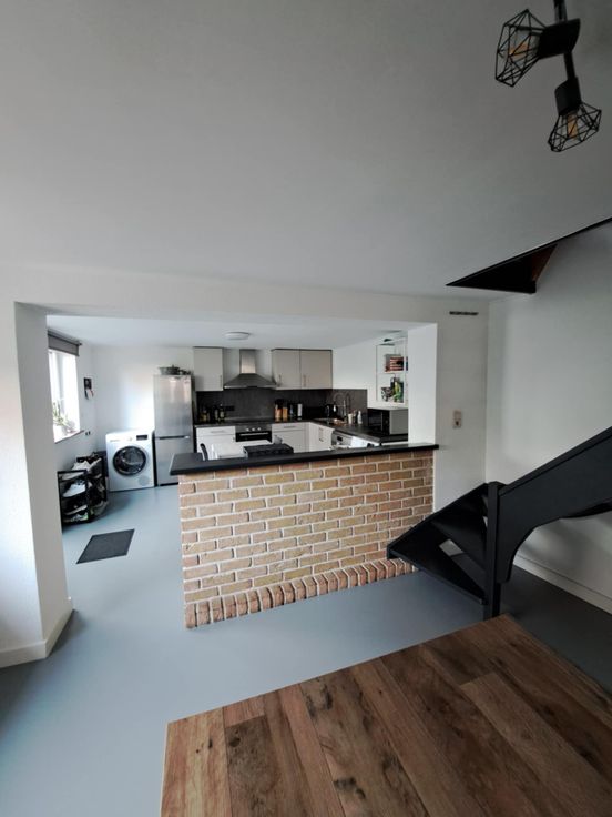 RDC (+/- 45m²) : 🍴Cuisine équipée en très bon état / 📺Salon + salle à manger